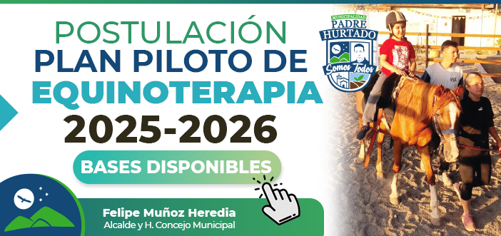 Vecinas y vecinos, les dejamos a disposición las bases y formulario para poder postular al Plan Piloto de Equinoterapia 2025-2026.